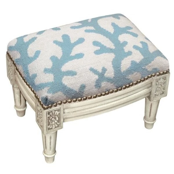 Looking for the latest styles. 123 Creations was created to provide American artisan handcrafted home décor accents gifts and accessories to those looking for something different yet tasteful. When you re in search of that feel good item or an inspiring gift we want to be your source. The items in this collection are handcrafted by specialty artisans and each piece is unique. Home Décor is becoming more popular every day. We all want to decorate our homes in a style befitting our taste and we re proud to offer outstanding designs that you ll never find in a big box store! The products are of the highest quality we combine an American made product line that is exceptional in value with unparalleled quality. 100 percent wool blue coral needlepoint upholstered solid wood footstool Style your home with furniture that exemplifies your exquisite taste. Choose from an amazing array of relaxing and luxurious beds. sofas. tables and more to the get a perfect piece of fixture for every space in your home or office. SpecificationsFinish: Antique WhiteDesign: Blue CoralMaterial: 100 Percent Wool & Solid WoodWeight: 7 lbs
