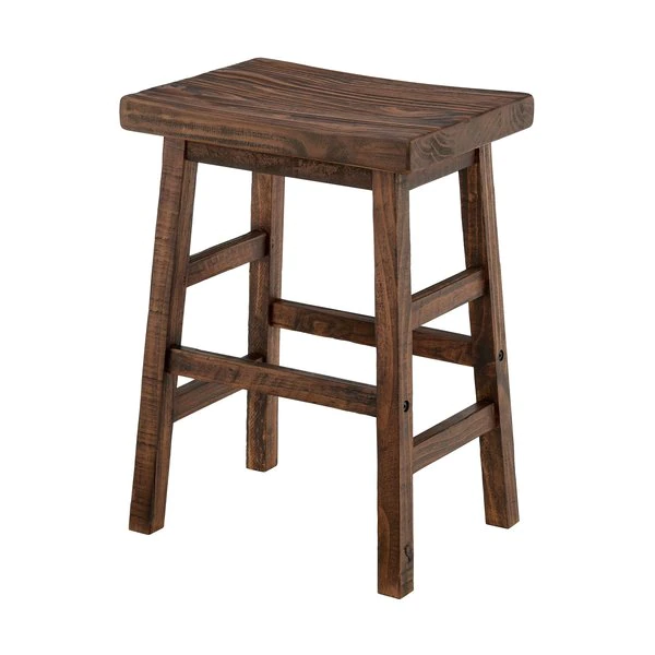 The Pomona collection features the exquisite workmanship of a solid wood top with metal legs that will last for years to come. Each piece is constructed of solid pine wood and finished to have the appearance of reclaimed wood. The reclaimed wood finish highlights natural wood variations such as cracks and knots which add to the piece's character. Any item in this collection will add to the rustic industrial style of any space. 26"H counter stool in modern farmhouse construction with its solid, rustic Pine wood seat and frame