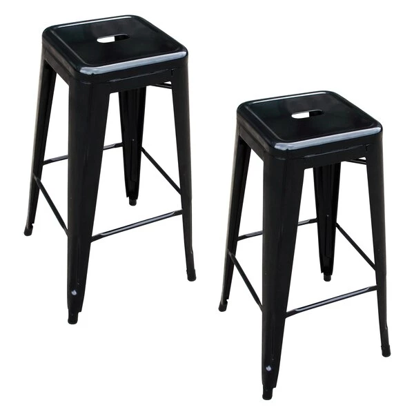 This AmeriHome Metal Bar Stool is durable enough for use in the shop, and stylish enough to use in the kitchen, game room, bar, basement, dorm room, or loft. A handle in the seat makes the stools easy to pick up and move. Lightweight and sturdy, each stool weighs only 12 lbs., but is strong enough to hold up to 330 lbs. Each Bar Stool stands 30" tall with a seat measuring 12" L x 12" W. Set of 2.