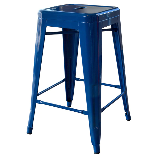 These 24" AmeriHome Metal Bar Stools are great for man caves, dorm rooms, and basement bars. Ideal for small spaces, the bar stools easily and neatly stack together, making them easy to stash out of the way for storage. Each stool weighs only 11 lbs., but is strong enough to hold up to 330 lbs. No-mar rubber feet keep them from sliding and scratching hardwood floors. Each Bar Stool stands 24" tall with a seat measuring 12" L x 12" W. Sold individually.