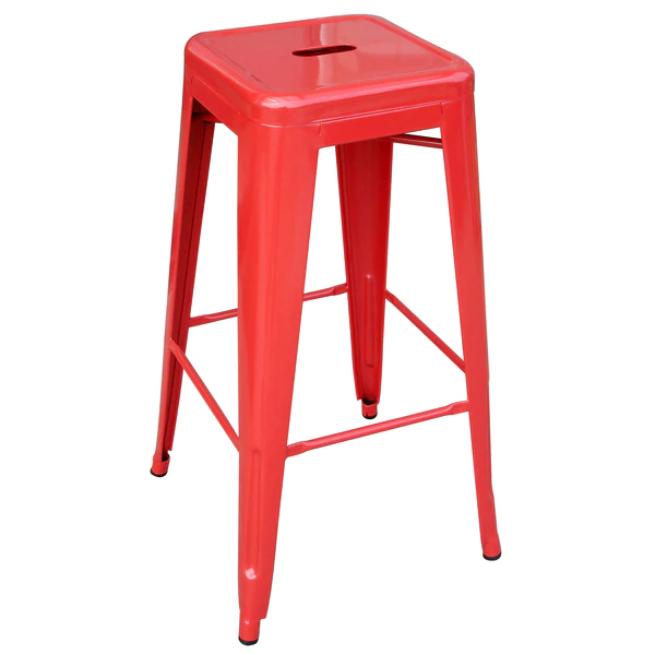 This AmeriHome Metal Bar Stool is durable enough for use in the shop, and stylish enough to use in the kitchen, game room, bar, basement, dorm room, or loft. A handle in the seat makes the stools easy to pick up and move. Lightweight and sturdy, each stool weighs only 12 lbs., but is strong enough to hold up to 330 lbs. Each Bar Stool stands 30" tall with a seat measuring 12" L x 12" W.