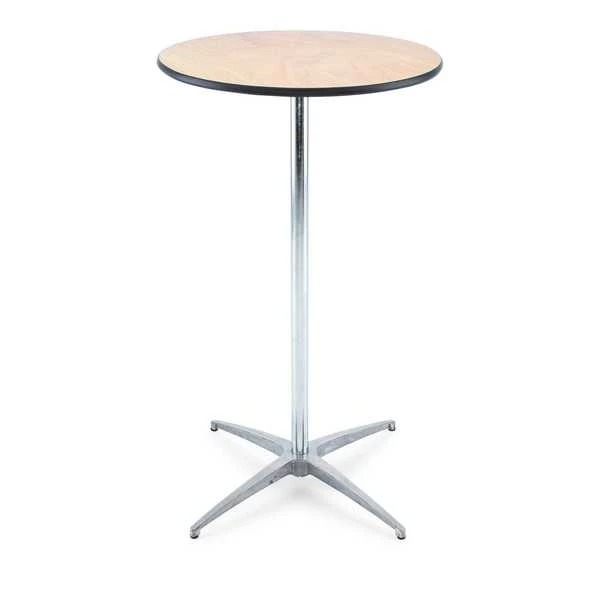 24" wooden cocktail table set featuring 30" and 42" poles for your desired height and a cocktail table base to secure all the pieces together. An event venue staple