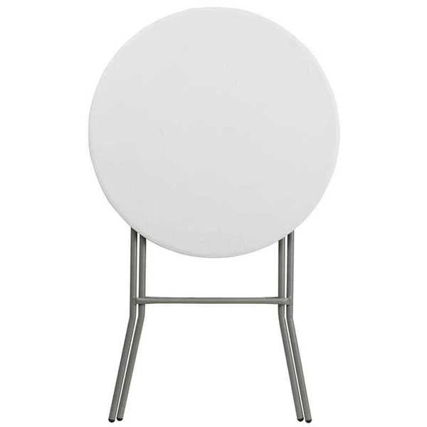 TitanPRo 32" Round Blow molded plastic folding cocktail table. 44 inches high. Easy to clean and easy to store or transport. Goes great with folding bar stool with back rest.