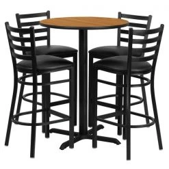 Flash Furniture Pub Table w/2 Columns, Round, 30", 30" W, 30" L, 42" H, Wood Top, Wood Grain