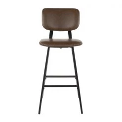 Lumisource Foundry Barstool in Black Metal, Cognac Faux Leather, PK 2