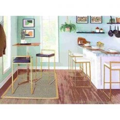 Lumisource Fuji Barstool in Gold with Black Faux Leather, PK 2