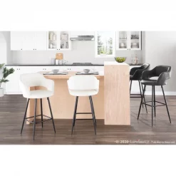 Lumisource Masters Adjustable Swivel Barstool in White Faux Leather