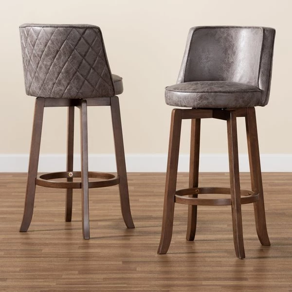 Baxton Studio Reneau Gray Upholstered Espresso Finished Wood Pub Chair, PK2
