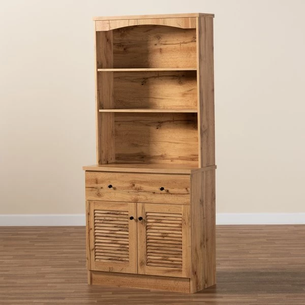 Baxton Studio Agni Modern and Contemporary Oak Brown Finished Wood Buffet and Hutch Kitchen Cabinet