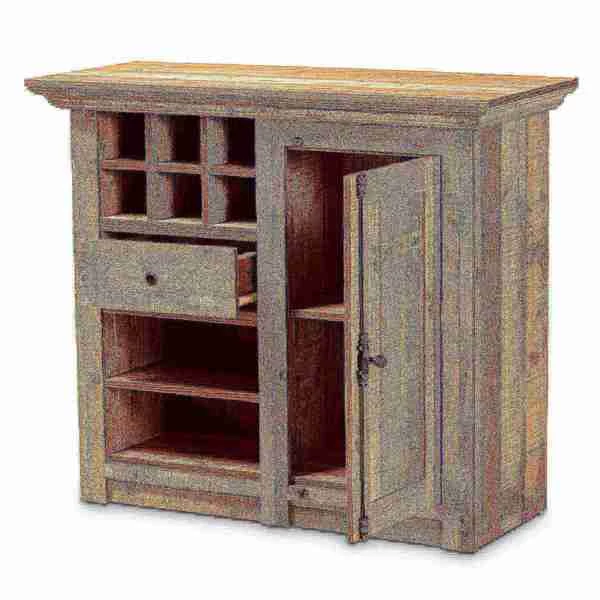 The striking style and incredible utility of the Albert sideboard transforms the modern dining room. Made in Malaysia, the Albert is crafted from sturdy wood displaying a distinctive rustic oak brown finish. Two open shelves easily organize dining essentials, while one drawer and two shelves behind the door provide more secure storage options. Requiring assembly, the Albert features six wine bottle cubbies to accommodate small collections. Decorative black finished metal handles add an industrial touch, making the Albert sideboard an outstanding option for the modern home.