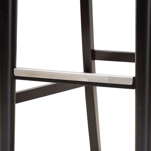 Contemporary design and modern comfort create the Alexandra bar stool. The Alexandra is crafted from wood in a traditional square frame. The bar stool balances form and function with an intricate cut-out design on its back and a soft, foam-padded seat for comfort. The Alexandra requires assembly and showcases a light tone fabric to complement the espresso brown finish of the wood. Sturdy silver metal is fitted on the front footrest, making the Alexandra bar stool well suited for both commercial and residential settings.
