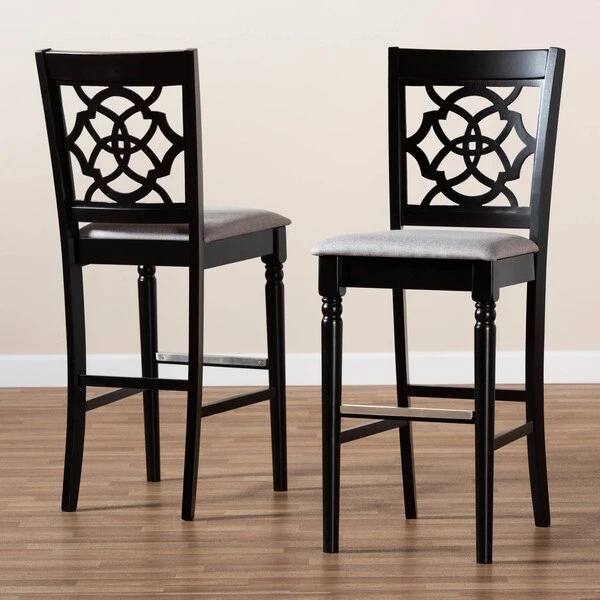 Baxton Studio Lanier Gray Upholstered Espresso Finished Wood Pub Chair, PK2