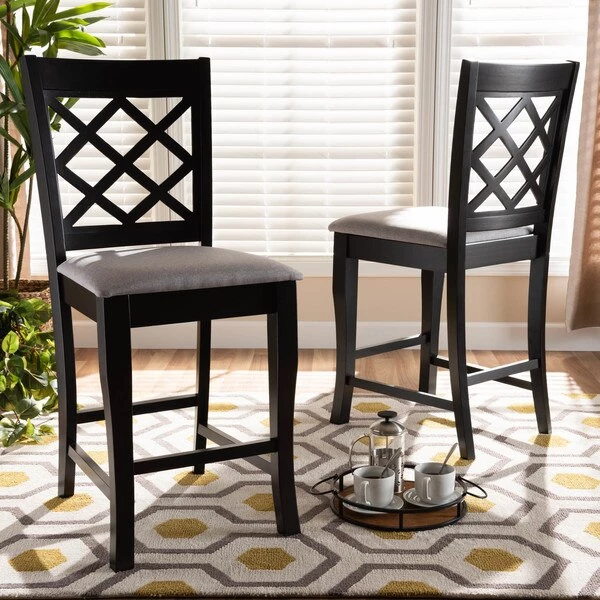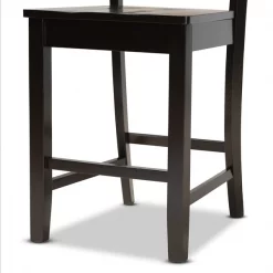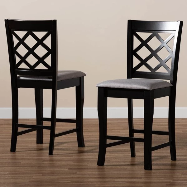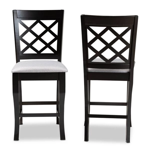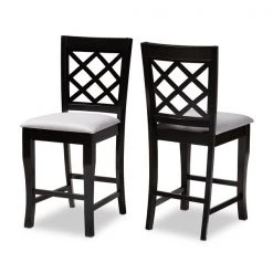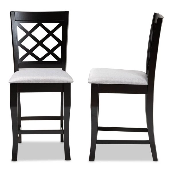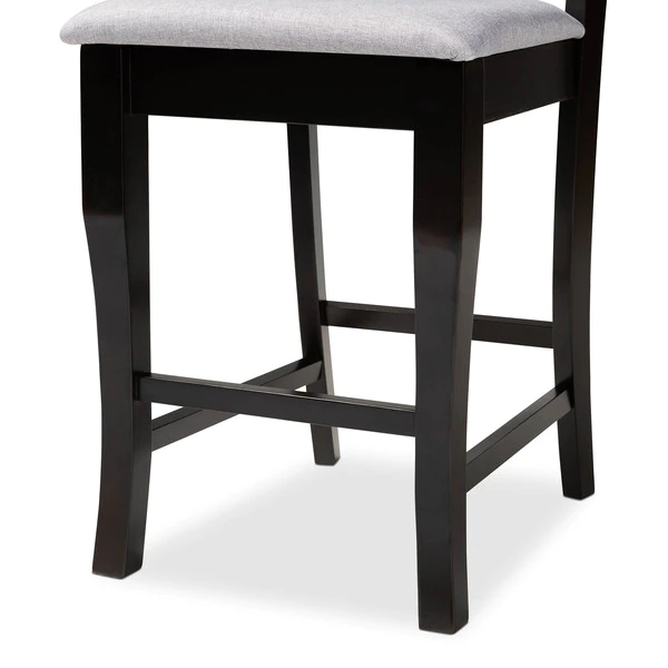 A fusion of traditional design elements and modern craftsmanship make the Alora counter stool a stunning addition to any dining space. This solid oak wood chair displays a sleek espresso brown finish that complements the light polyester fabric upholstery. Padded with foam for the utmost comfort as you enjoy long dinners, the Alora features a striking cut-out back for enhanced visual appeal. Constructed at counter height, the Alora is suitable for use with kitchen counters and pub tables. The Alora counter stool requires assembly.