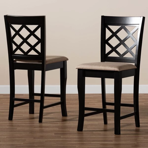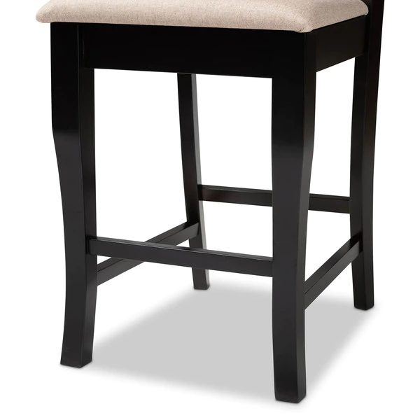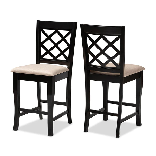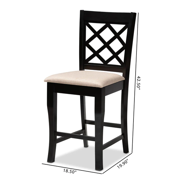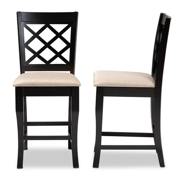 A fusion of traditional design elements and modern craftsmanship make the Alora counter stool a stunning addition to any dining space. This solid oak wood chair displays a sleek espresso brown finish that complements the light polyester fabric upholstery. Padded with foam for the utmost comfort as you enjoy long dinners, the Alora features a striking cut-out back for enhanced visual appeal. Constructed at counter height, the Alora is suitable for use with kitchen counters and pub tables. The Alora counter stool requires assembly.