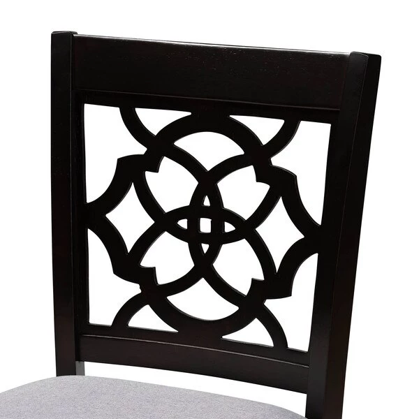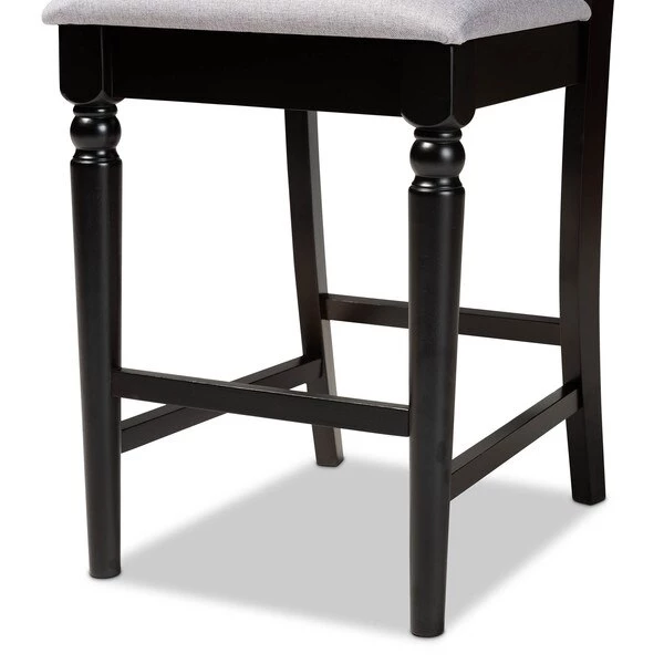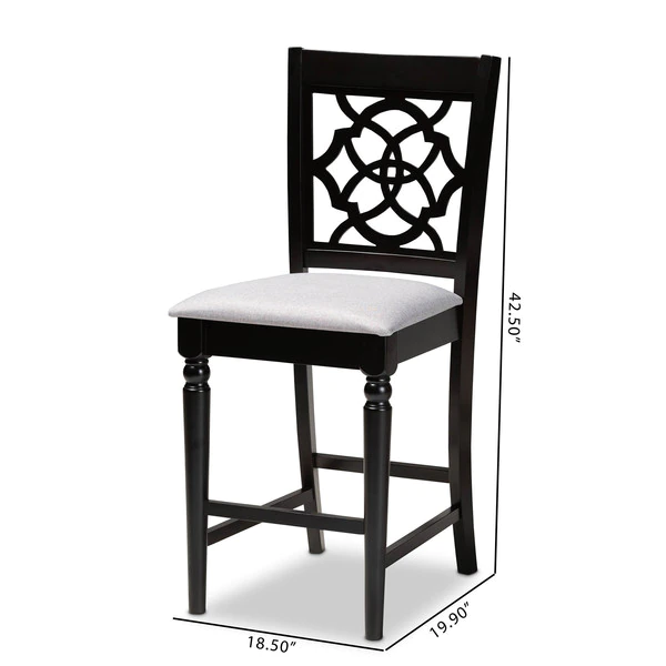 Redefine your dining space with the elegance and comfort of the Arden counter stool. This solid oak wood chair displays a sleek espresso brown finish that complements the light polyester fabric upholstery. Padded with foam for the utmost comfort as you enjoy long dinners, the Arden features a striking cut-out back for enhanced visual appeal. Ball turned legs add a classic, refined touch. Constructed at counter height, the Arden is suitable for use with pub tables and kitchen counters. The Arden counter stool requires assembly.