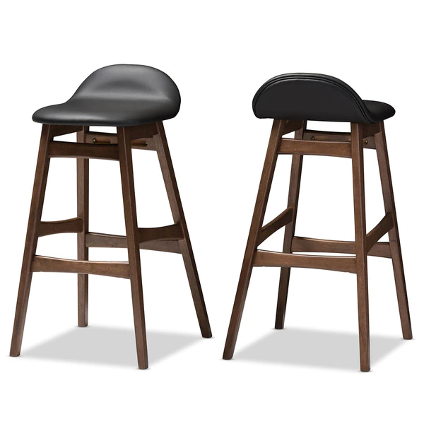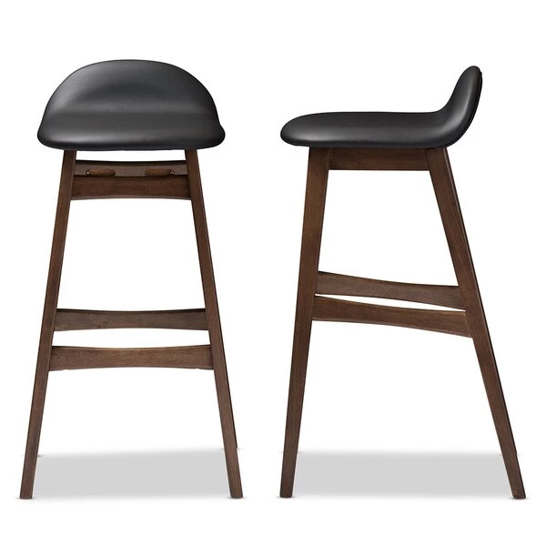 Infuse your home with everyday function and organic appeal with the Bloom Mid-century Retro Modern Scandinavian Style Black Faux Leather Upholstered Walnut Wood Finishing 2-piece 30-Inch Barstool. This modern bar stool features a bold solid wood base that ensures long lasting strength, while the plush seat in black faux leather is small with supportive back rest. The built in footrest offers extra support. Bloom barstool is the perfect balance of comfort and style. The crisp clean lines and subtle curve is combined with supportive seating. A small cushioned seat with lipped edges and a low back rest keeps you comfortable and well supported, while a built in foot rest provides extra support. The barstool infuses the modern space with an innate style. The Bloom requires assembly.