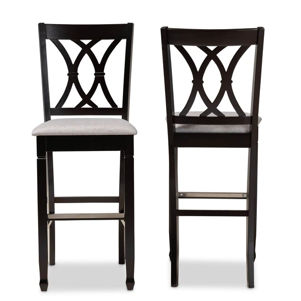 Baxton Studio Caron Gray Upholstered Espresso Finished Wood Pub Chair, PK2