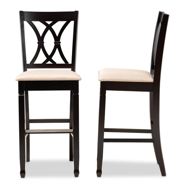 Baxton Studio Caron Gray Upholstered Espresso Finished Wood Pub Chair, PK2