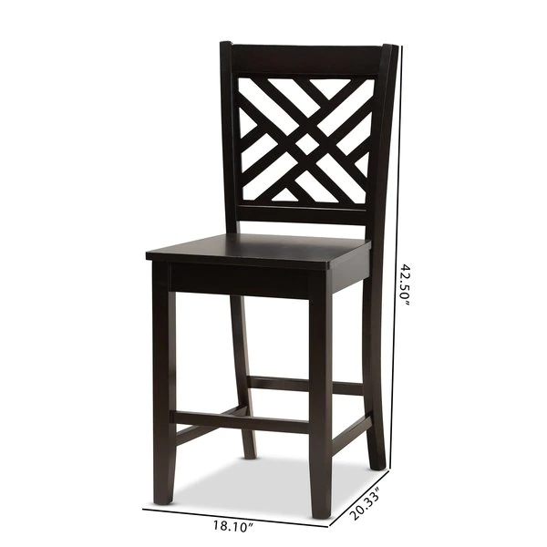 Redefine your dining space with the elegance and comfort of the Caron counter stool. Made in Malaysia, this solid wood chair showcases a rich dark brown finish for a sleek, modern feel. Its flat seat and footrest provide casual comfort, while the stunning cut-out back lends visual appeal. Requiring assembly, this stylish and versatile stool is suitable for use with pub tables and kitchen counters. A stunning and unique addition, the Caron counter stool elevates any dining occasion.