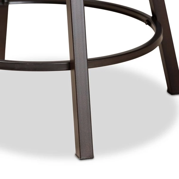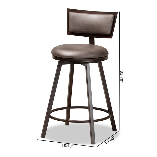 With a modern design that radiates industrial charm, the Danson pub chair easily updates any space. Made in China, the Danson features a slim, antique dark brown finished metal frame upholstered in smooth grey fabric. The convenient backrest and swivel seat are padded with layers of foam to ensure a comfortable dining experience. Requiring assembly, the Danson features a circular footrest that provides ergonomic support while creating a distinct silhouette. The compact size of the Danson pub chair makes it an excellent addition to any home bar or lounge area.