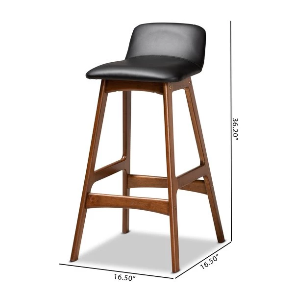 Add ergonomic and minimalist appeal to your dining space with the Darrin bar stool. Made in Malaysia, the Darrin showcases a warm walnut brown finish that easily coordinates with a variety of color schemes and styles. The seat and backrest are padded with foam and upholstered in sleek black faux leather. Requiring assembly, the Darrin is equipped with a footrest for added comfort. Ideal for a home bar or lounge area, the Darrin counter stool adds contemporary comfort to any space.