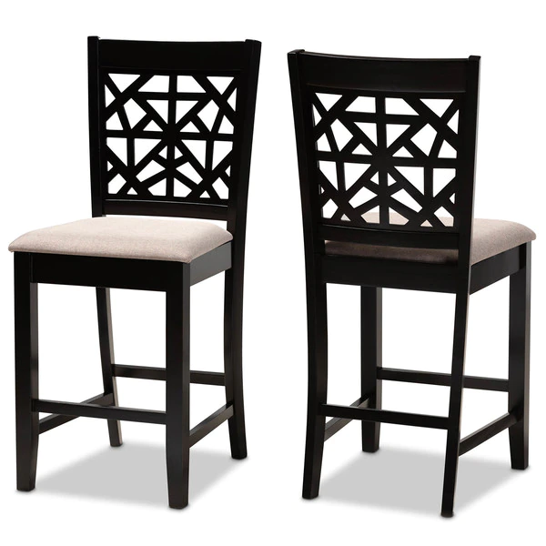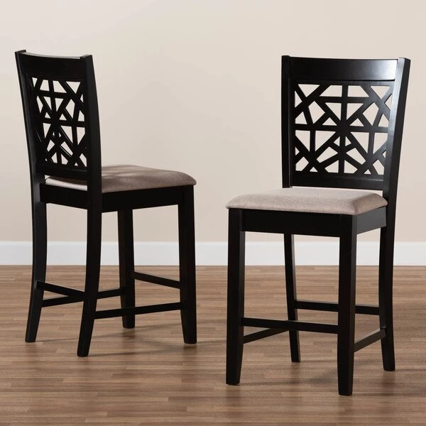 Baxton Studio Lanier Gray Upholstered Espresso Finished Wood Pub Chair, PK2