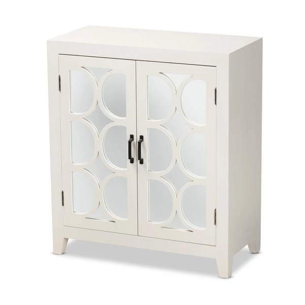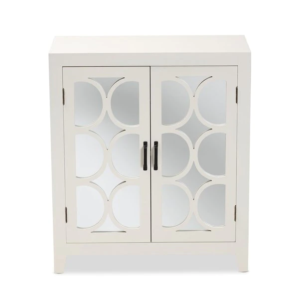 Baxton Studio Garcelle ModernWhite Finished Wood and Mirrored Glass 2-Door Sideboard