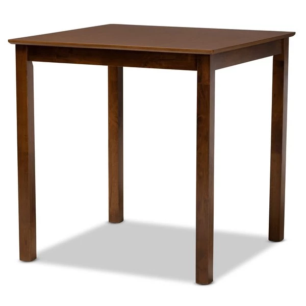 Imbue your dining space with the elegance of the finely crafted Gervais pub set. Made in Malaysia, this wooden set includes four counter stools and one table finished in a warm walnut brown. Each stool features a scoop seat and footrest for casual comfort, while a unique, geometric cut out design on each backrest adds visual appeal. Requiring assembly, the square tabletop provides ample elbow room for each member of the table. An optimal balance of comfort and modern style, the Gervais pub set enhances any occasion.