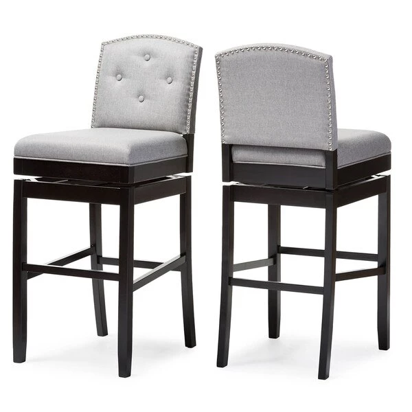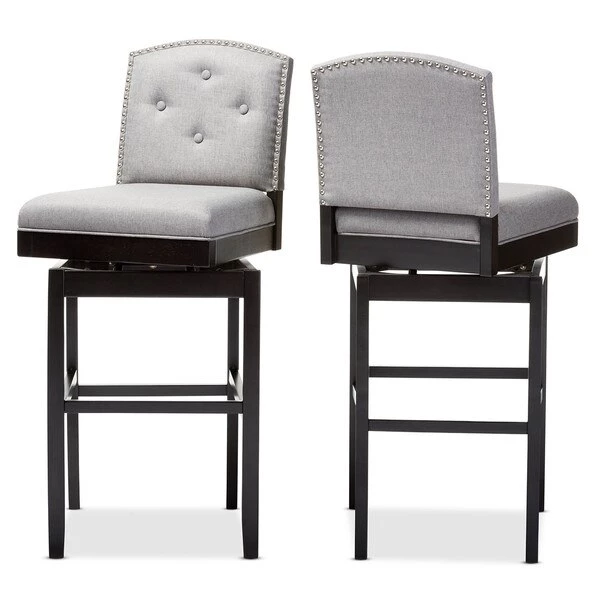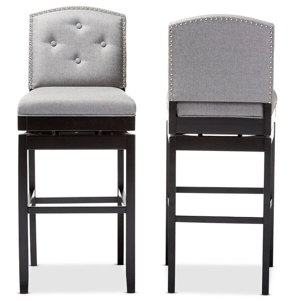 Baxton Studio Caron Gray Upholstered Espresso Finished Wood Pub Chair, PK2