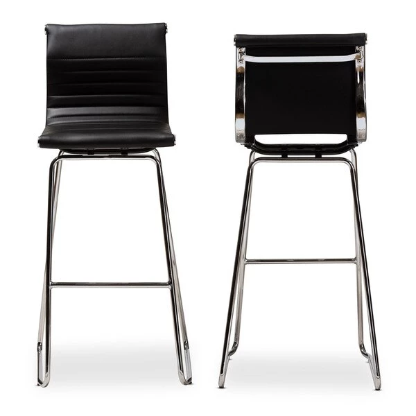Anchor your kitchen in sleek, modern style with the Giorgio counter stool. Constructed from high-quality, chrome-finished stainless steel for strength, the Giorgio is upholstered in durable black faux leather for easy maintenance. Designed with comfort in mind, the counter stool features a curved backrest and a footrest. Rubber protectors are affixed to the bottom of the counter stool to help prevent scratched floors. This stylish and practical counter stool is sure to spruce up any interior. The Giorgio counter stool requires assembly.