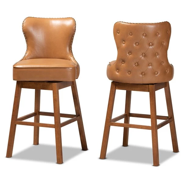 Baxton Studio Lenoir Sand Upholstered Espresso Finished Wood Pub Chair, PK2