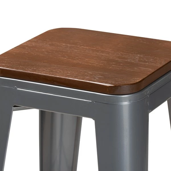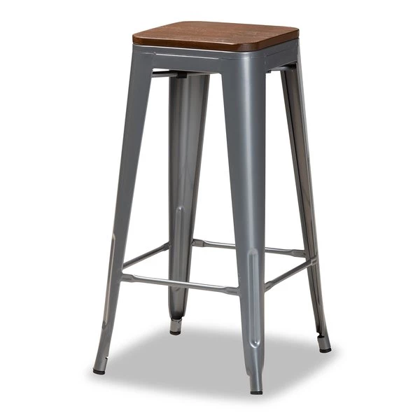 Baxton Studio Horton ModernGrey Metal and Walnut Brown Finished Wood 4-Piece Bar Stool Set