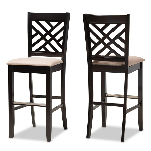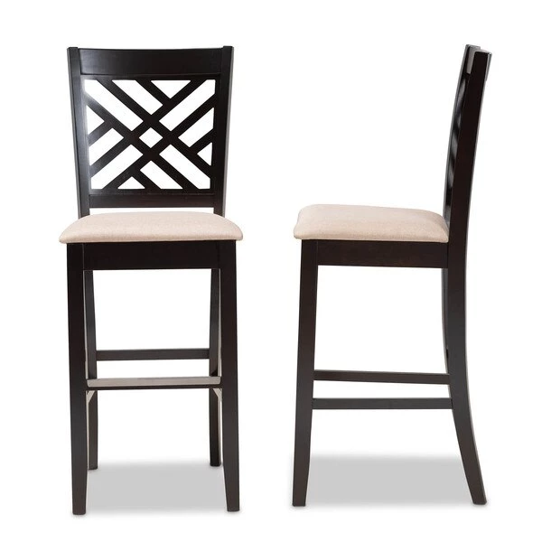 Baxton Studio Reneau Sand Upholstered Espresso Finished Wood Pub Chair, PK2