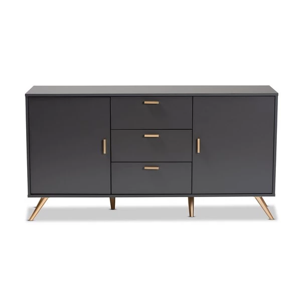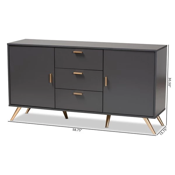 Baxton Studio Kelson Modern and Contemporary Dark Grey and Gold Finished Wood 2-Door Sideboard Buffet