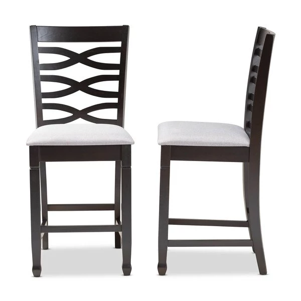 Baxton Studio Reneau Gray Upholstered Espresso Finished Wood Pub Chair, PK2