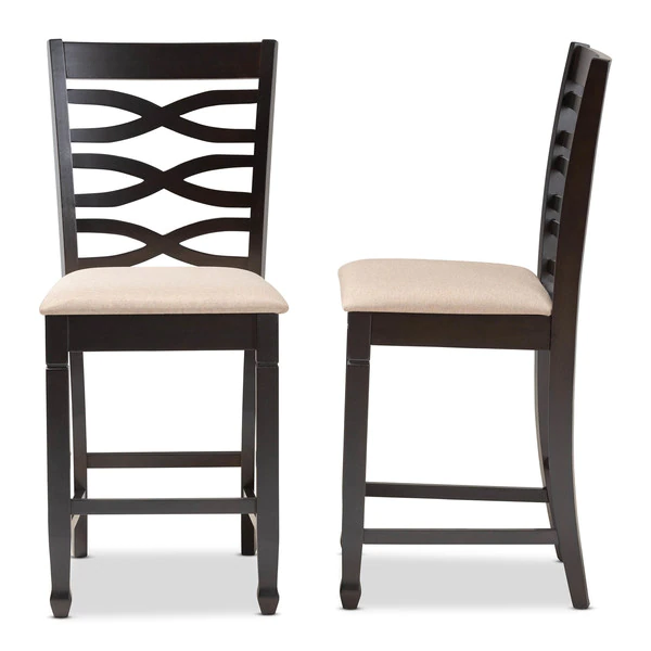 Baxton Studio Reneau Sand Upholstered Espresso Finished Wood Pub Chair, PK2