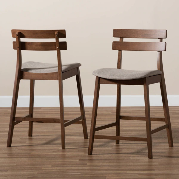 Establish a clean, modern aesthetic in your dining space with the Larine counter stool. Constructed from solid rubberwood, the Larine features a classic walnut brown finish that complements a variety of color palettes. The seat is upholstered in a soft fabric that displays a chic crosshatch pattern. Designed with both style and comfort in mind, the Larine is built with a curved backrest and solid footrest on all four sides. This counter stool is sutiable for use with kitchen counters and pub tables. The Larine counter stool requires assembly.