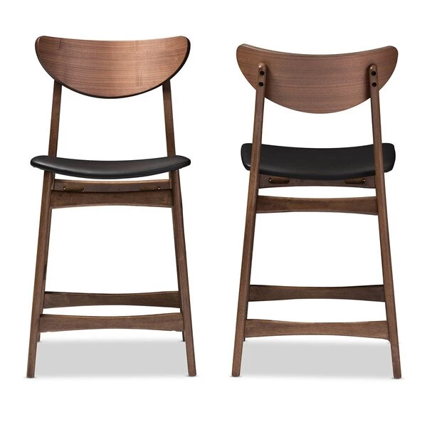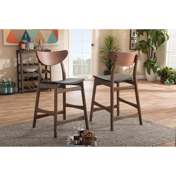 Latina Barstool is simple, organic design that combines everyday function with contemporary style. It is available in different choice of wood and finish combination. Intricately curved backrest provides support while keeping a touch of modern artistry. The curved and cushioned seat promotes comfort and style. This contemporary stool is finished with solid rubberwood frame that ensures long lasting strength and stability. For a contrast effect, the seat is upholstered in black faux leather with foam padding. Infuse your modern bar with the Latina Barstool and maintain a warm, welcoming atmosphere. The Latina counter stool requires assembly.