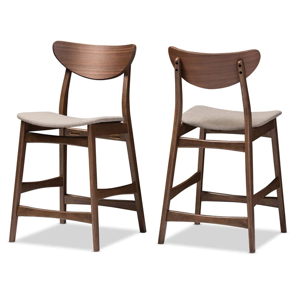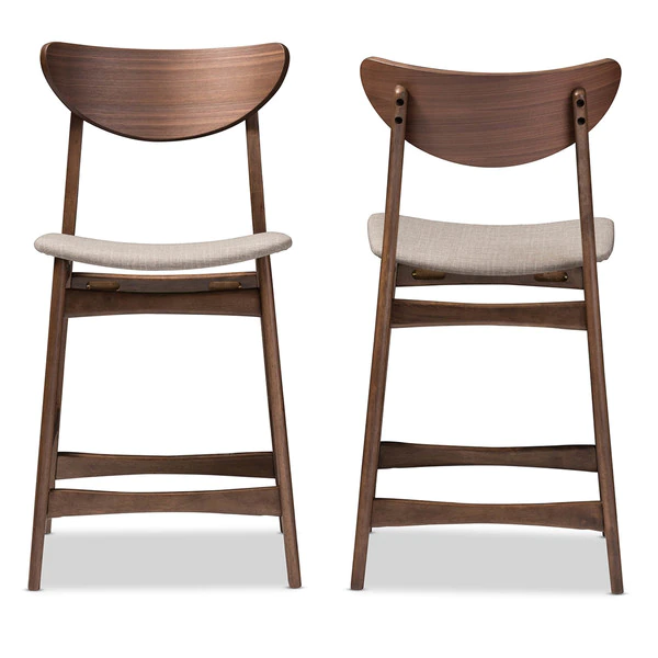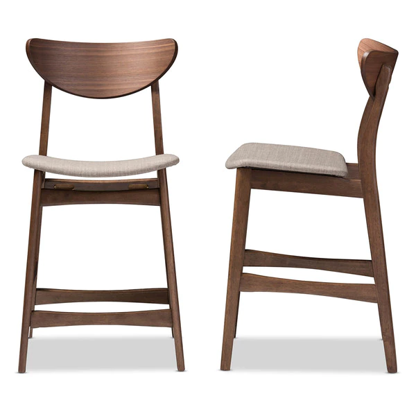 Latina Barstool is simple, organic design that combines everyday function with contemporary style. It is available in different choice of wood and finish combination. Intricately curved backrest provides support while keeping a touch of modern artistry. The curved and cushioned seat promotes comfort and style. This contemporary stool is finished with solid rubberwood frame that ensures long lasting strength and stability. For a contrast effect, the seat is upholstered in grey polyester fabric with foam padding. Infuse your modern bar with the Latina Barstool and maintain a warm, welcoming atmosphere. The Latina counter stool requires assembly.