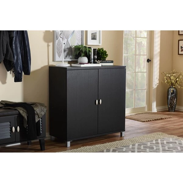 Is your closet too small to use? Marcy Modern and Contemporary Dark Brown Wood Entryway Handbags or School Bags Storage Sideboard Cabinet will provide you with a storage solution to house your bags! This way, you can keep all your bags together and have them easily visible to you. Even better, this bag cabinet provides you with five shelving compartment for different sizes of bags and accessories like scarves, belts, and of course bags. It will clear up closet space for your clothing and shoes as well as give you a fashionista bag haven! The better organized you are with your purses the more you will wear them and the longer they will last! Your handbags aren't doing you any good laying all over your closet floor or tucked away under your bed. The key is to make them visible and easily accessible so it doesn't seem like such a hard task to change up your bag to match your outfit perfectly! Constructed of engineered wood in dark brown finishing, the Marcy is equipped with two doors to keep the dust away. For practical everyday use, the right top shelf comes with silver rail and hanger for you to hang your bags. This bags storage cabinet requires assembly.
