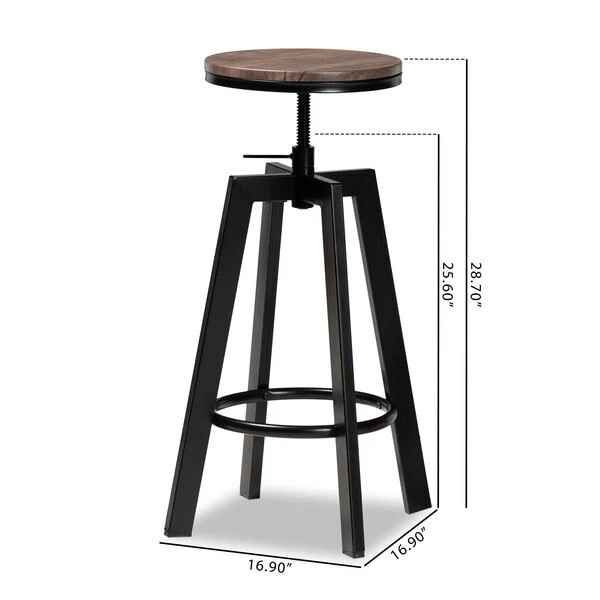 Add a cool industrial vibe to your dining area with the Maritta bar stool. This bar stool features a walnut brown finish that complements the black metal frame. A swivel seat and solid footrest lend ample comfort while dining. Height adjustable to fit your needs, this bar stool is easy to coordinate with a wide range of decorative styles. Requiring assembly, the Maritta bar stool is well suited for both kitchens and bar areas.