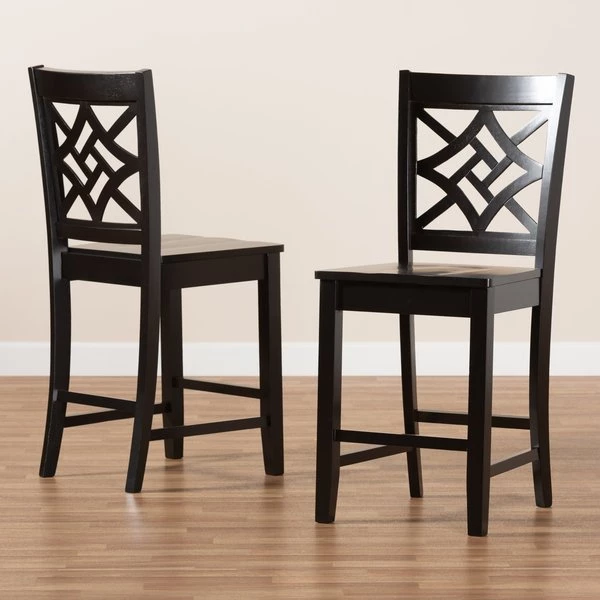 Add crisp, contemporary design to your space with the visually striking Nicolette counter stool. Made in Malaysia, the Nicolette is comprised of a sturdy wood frame showcasing a rich dark brown finish. A smooth scoop seat provides casual comfort. Requiring assembly, the backrest features a unique, intricate cut out design for strong visual appeal. Comfortable and stylish, the Nicolette counter stool elevates any experience.