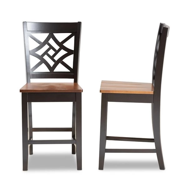 Add crisp, contemporary design to your space with the visually striking Nicolette counter stool. Made in Malaysia, the Nicolette is comprised of a sturdy wood frame showcasing a rich dark brown finish. The seat is finished in a distinctive walnut brown hue and is scooped for a more casual and comfortable experience. Requiring assembly, the backrest features a unique, intricate cut-out design for strong visual appeal. Comfortable and stylish, the Nicolette counter stool elevates any experience.