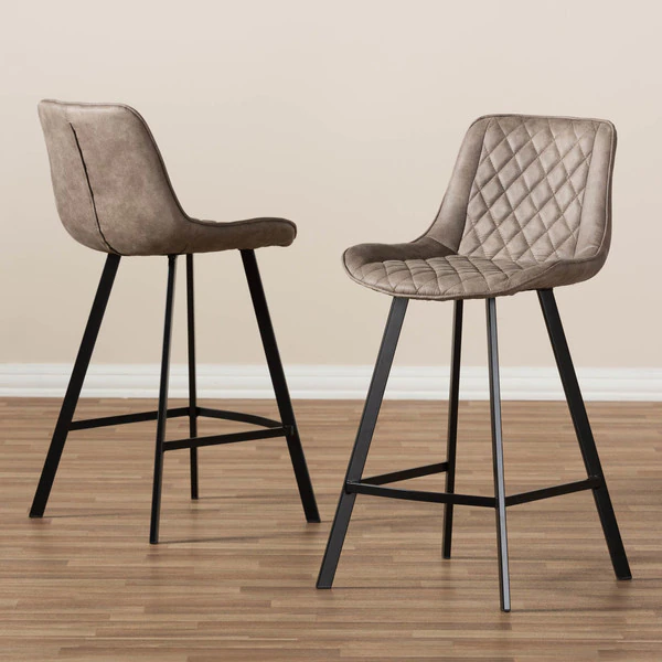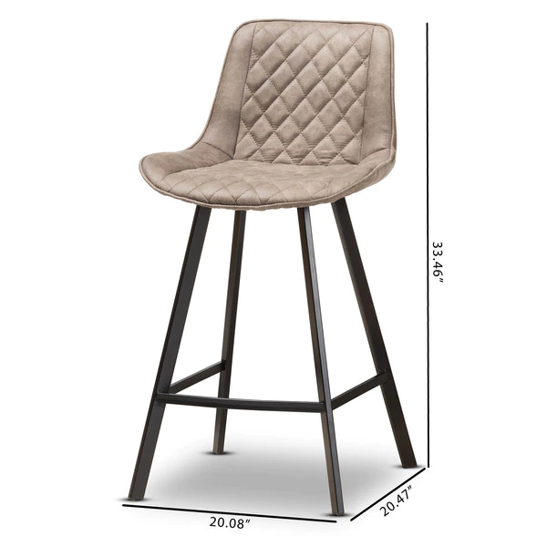 Adorn your home or kitchen with the sophisticated look of the Pickford counter stool. Constructed of steel base for sturdiness and strength, the stool is powder coated black to complement any color palette. Light brown polyester fabric upholstered seat cushion for added comfortability, and a footrest for support as you unwind. Slightly curved design with a high seat back for back support, the Pickford features diamond stitch for textural appeal. With the smooth edge of the seat, the stool provides extra relaxation for the legs. The Pickford requires assembly.
