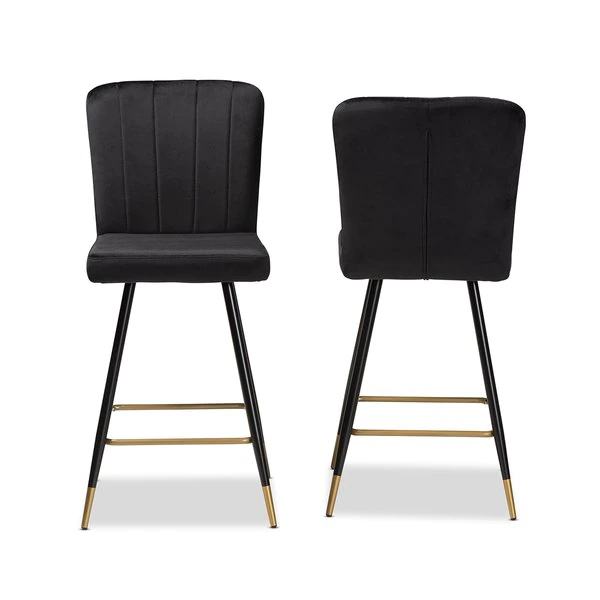 Baxton Studio Preston Modern Luxe and Glam Black Velvet Upholstered and Two-Tone Metal 2-Piece Bar Stool Set