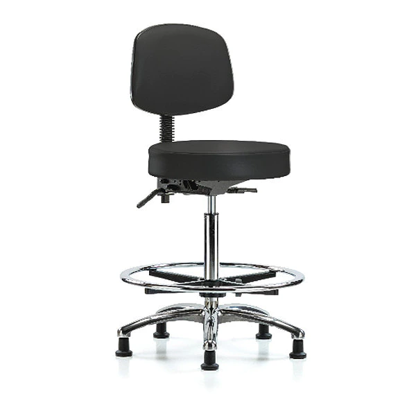 - Item: Ben Stool,Hi,Vin,Bk,Chrome,CF,Glides,BLK