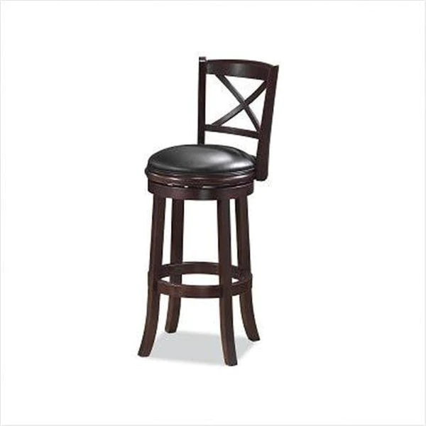 Boraam Industries was established in 2001. Our highly qualified sales team has many years of experience in the furniture industry. Products are distributed from Mundelein. Ilinois. In addition. Boraam provides sourcing and product development services in neighboring countries. such as Thailand. Vietnam and Indonesia. The downstream manufacturing capacity of Boraam. ensures on-time delivery of high quality furniture. Features:Solid hardwood construction.Cappucino finish.Black faux leather seat with high density foam.Steel ball bearing.Swivel for durability.French leg with tampered bottoms.Seat height: 29".Dimensions: 44"H x 22"W x 19"D.