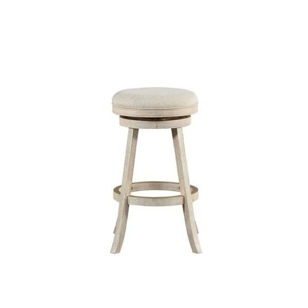 The backless Fenton Swivel Stool can be tucked away or put on display. depending on the size of your space. However you use it. this stool is a stylish and wise investment. Its eco-friendly rubberwood frame features a handsome multistep wire-brush finish. Linen upholstery covers the high-density foam seat. The Fenton features a full-ring footrest protected with a metal kick plate on top and a double seat apron. The ball-bearing steel swivel plate provides a flawless 360-degree swivel. in two wire-brush finishes;; driftwood and ivory. FeaturesRubberwood frameMultistep wire-brush finishLinen upholstery with single welt cord trimHigh-density foam cushionSwiveling seatSpecificationsMaterials: RubberwoodFinish: Ivory Wire-BrushDimensions: 17.75 x 24.5 x 17.75 in.Seat height: 24 x 29 in.Country of Origin: VietnamWeight: 26 lbs