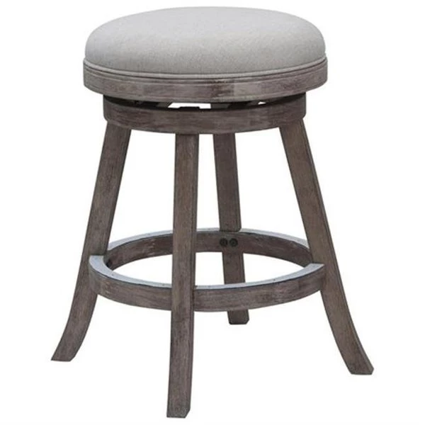 FeaturesThe Sheldon Bar Stool puts a twist on a simplistic design.Multistep wire-brush finishing methodProtective metal kick-plate around the top of the footrest360 degree swivelMade with solid rubberwoodFinish – Driftwood Gray Wire-brush and IvorySize – 29 in.