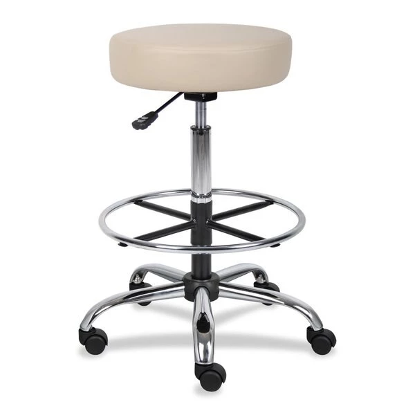 Ergonomic design emulates the natural shape of the spine to increase comfort and productivity. Upholstered in durable Caressoft vinyl for easy maintenance and cleaning. Adjustable seat height with a 6" vertical height range. Attractive chrome finished foo
